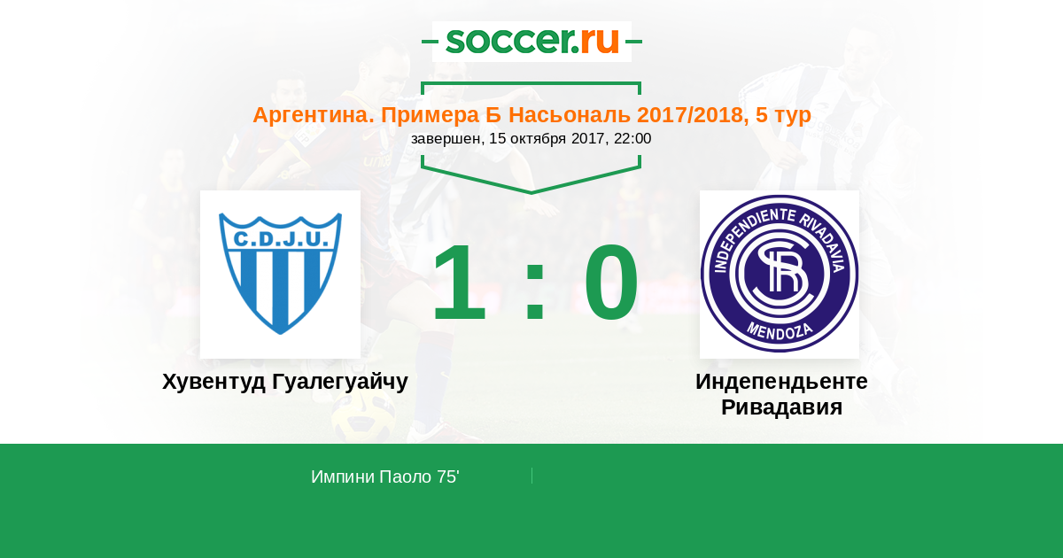 Хувентуд Гуалегуайчу - Индепендьенте Ривадавия: обзор матча 15 октября 2017