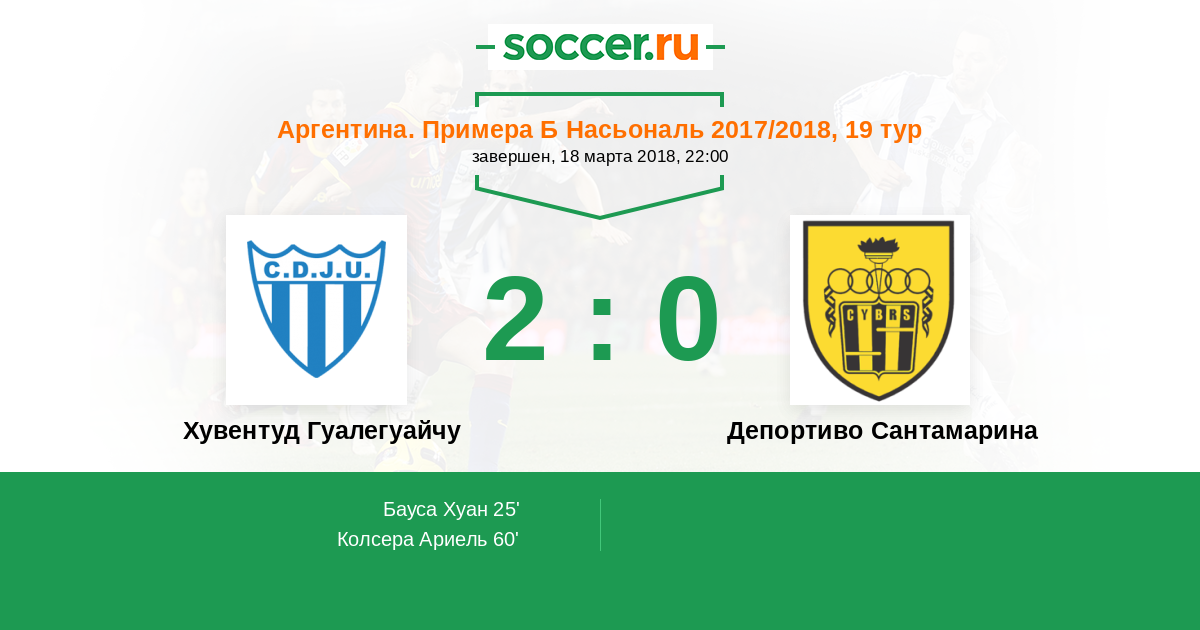 Хувентуд Гуалегуайчу - Депортиво Сантамарина: обзор матча 18 марта 2018