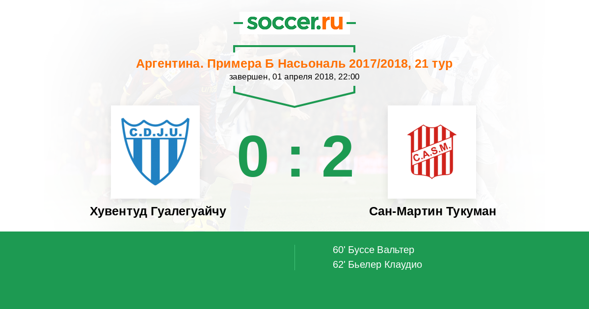 Хувентуд Гуалегуайчу - Сан-Мартин Тукуман: обзор матча 1 апреля 2018