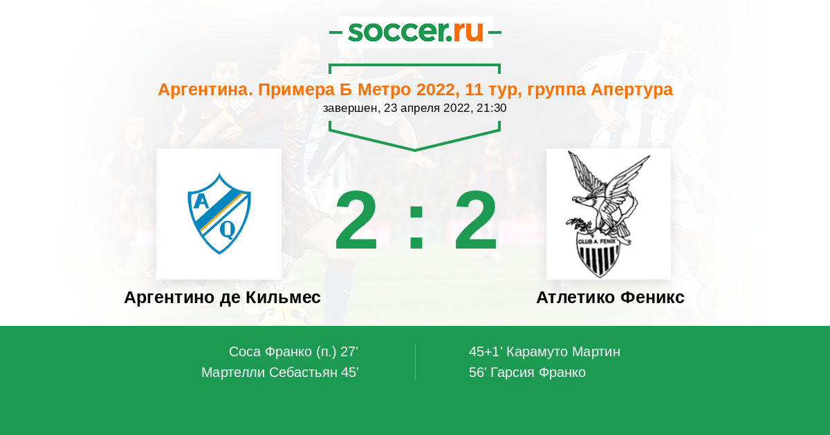 Аргентино де Кильмес - Атлетико Феникс: обзор матча 23 апреля 2022