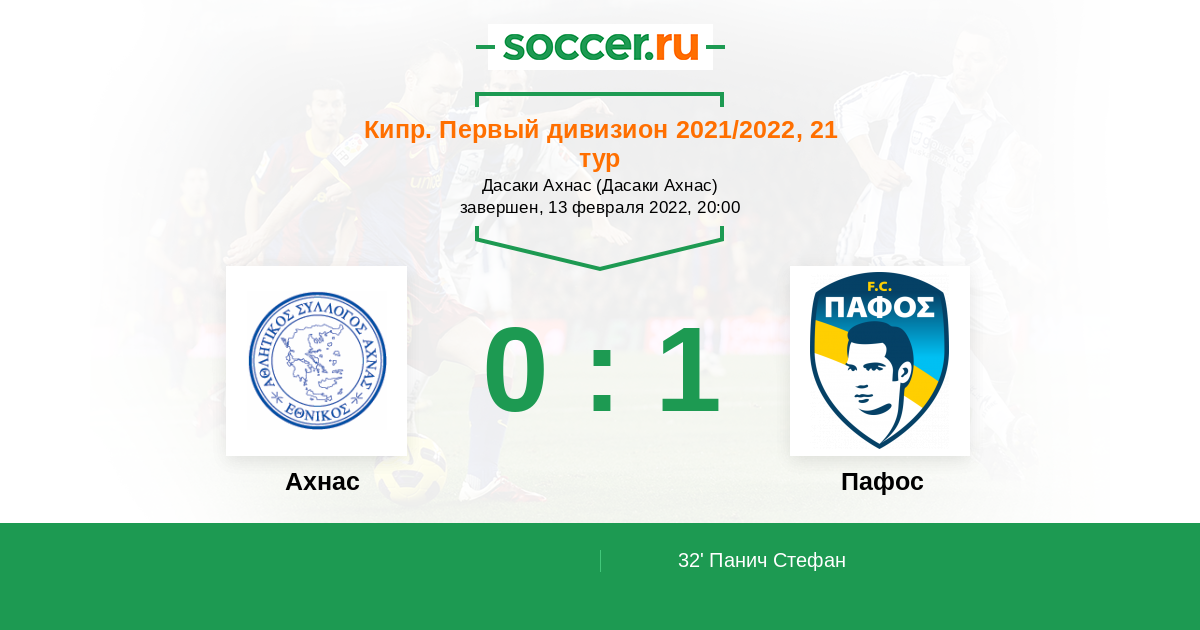 Ахнас - Пафос: обзор матча 13 февраля 2022
