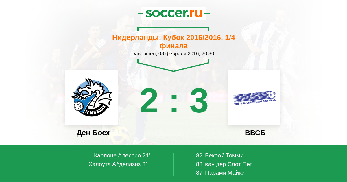 Ден Босх - ВВСБ: обзор матча 3 февраля 2016