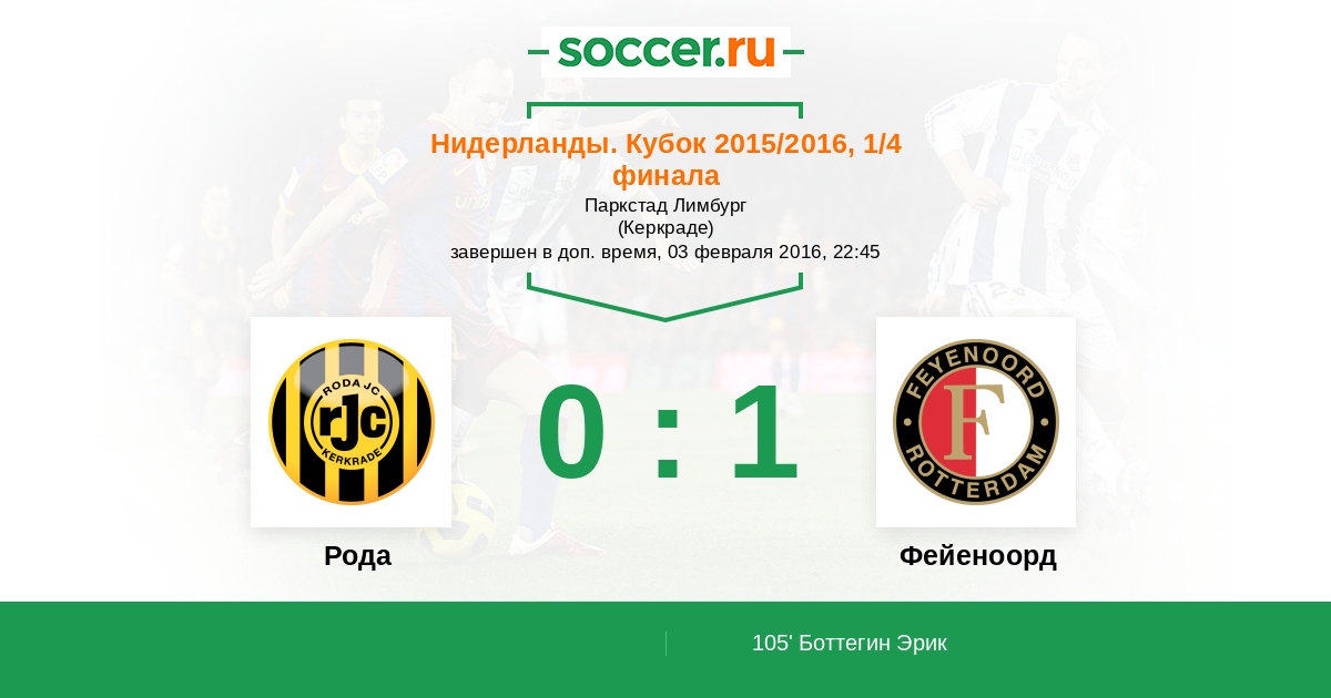 Рода - Фейеноорд: обзор матча 3 февраля 2016