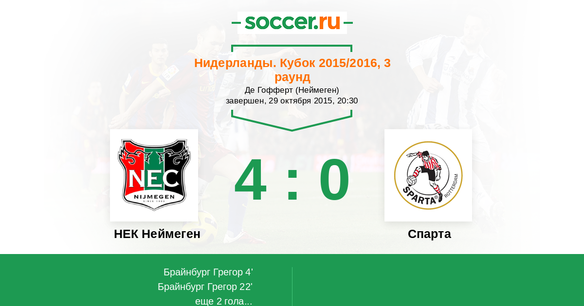 НЕК Неймеген - Спарта: обзор матча 29 октября 2015