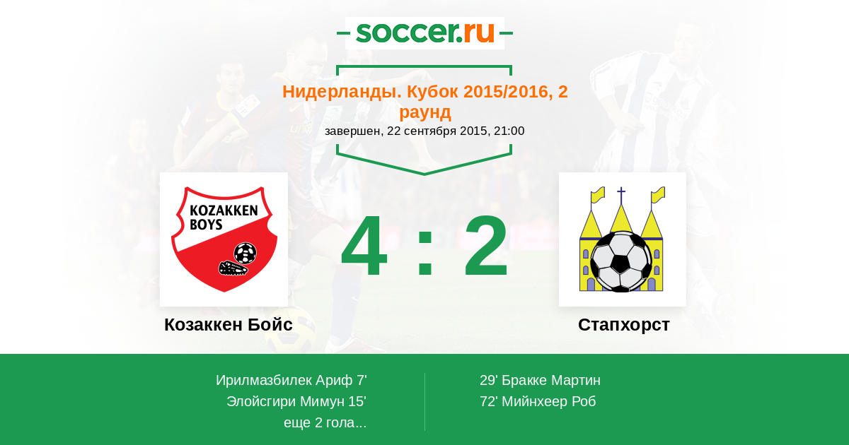 Козаккен Бойс - Стапхорст: обзор матча 22 сентября 2015