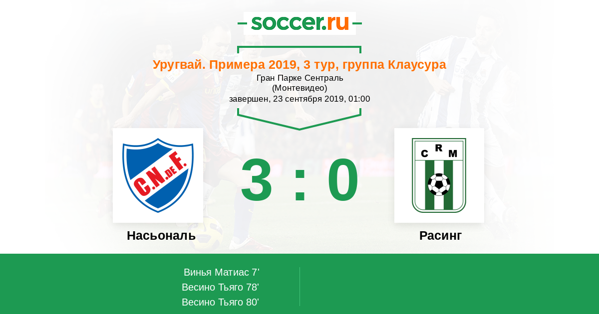 Насьональ - Расинг: обзор матча 23 сентября 2019