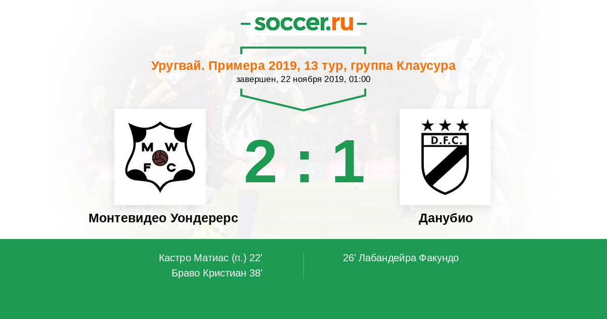 Монтевидео Уондерерс - Данубио: обзор матча 22 ноября 2019