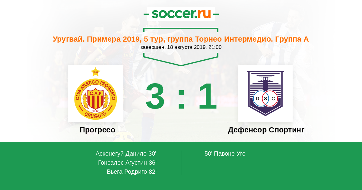 Прогресо - Дефенсор Спортинг: обзор матча 18 августа 2019