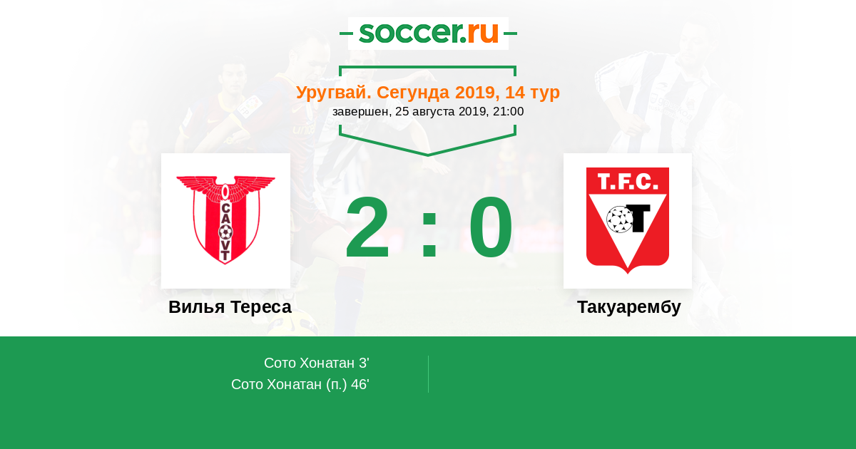 Вилья Тереса - Такуарембу: обзор матча 25 августа 2019