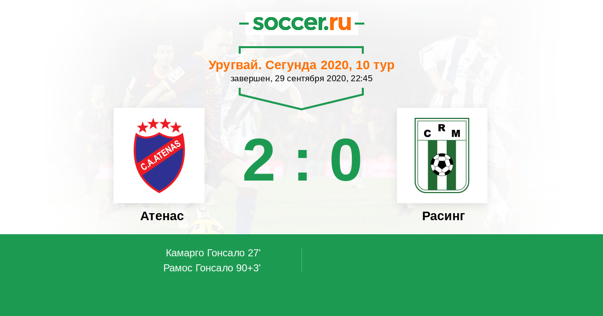 Атенас - Расинг: обзор матча 29 сентября 2020