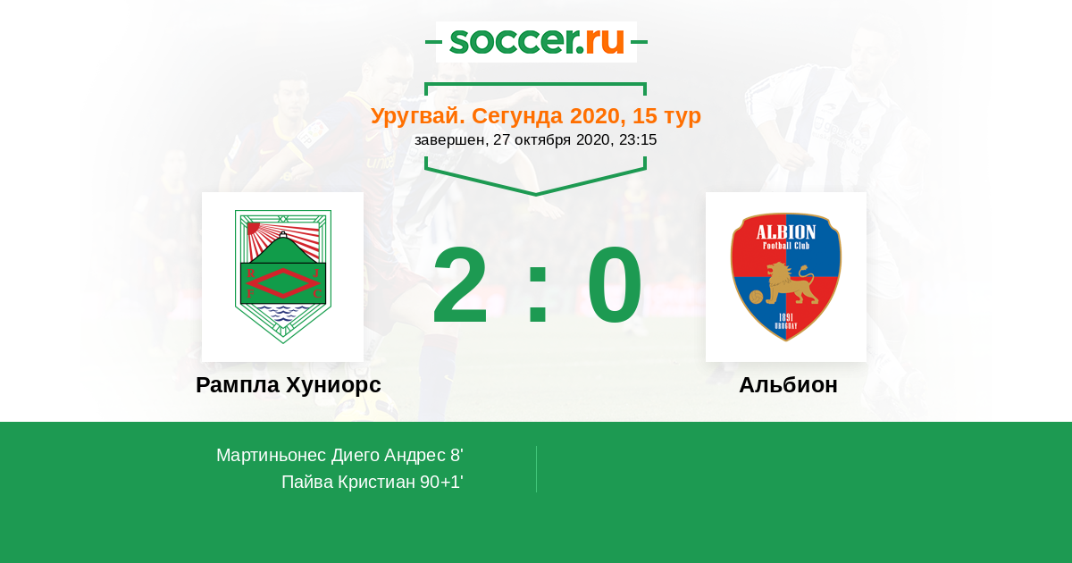 Рампла Хуниорс - Альбион: обзор матча 27 октября 2020