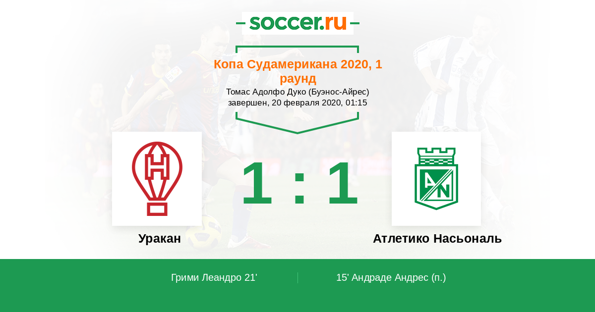 Уракан - Атлетико Насьональ: обзор матча 20 февраля 2020