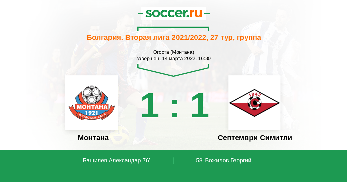 Монтана - Септември Симитли: обзор матча 14 марта 2022