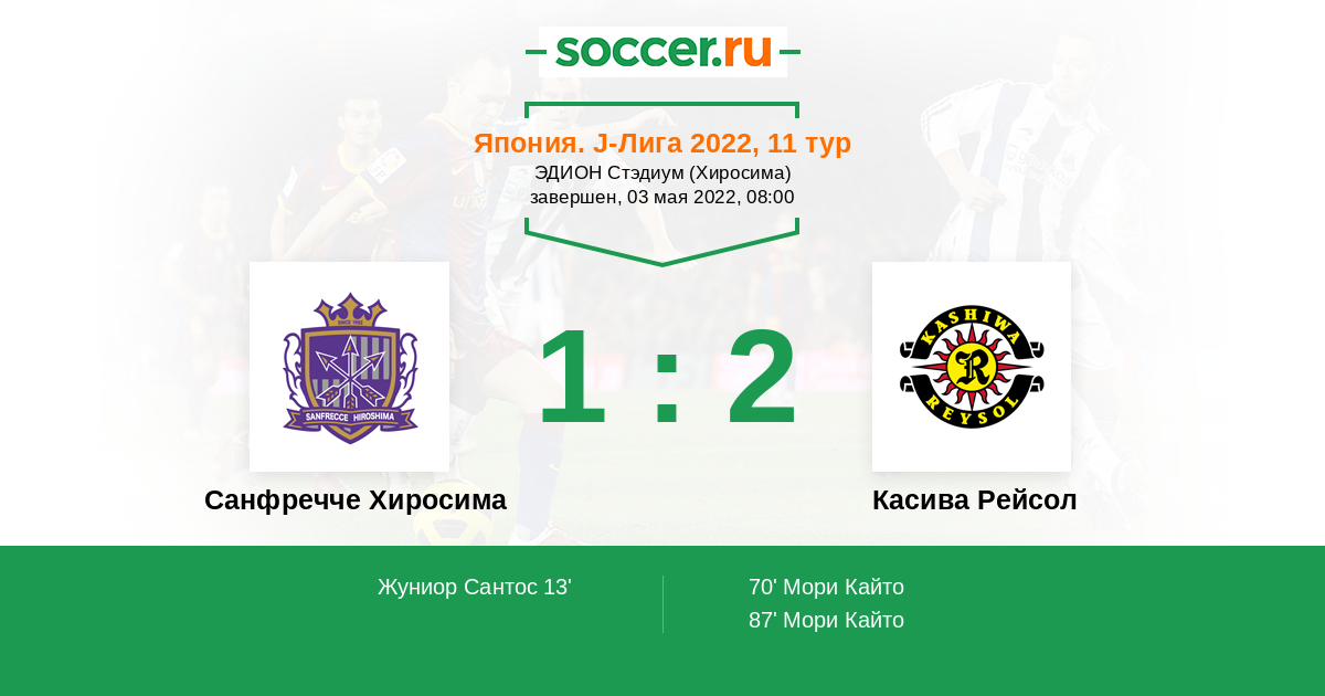 Санфречче Хиросима - Касива Рейсол: обзор матча 3 мая 2022