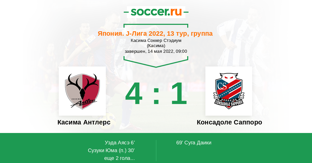 Касима Антлерс - Консадоле Саппоро: обзор матча 14 мая 2022