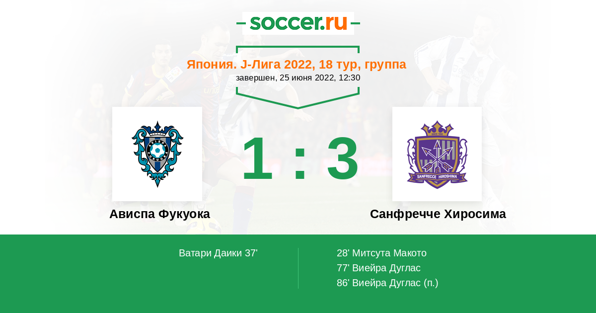 Ависпа Фукуока - Санфречче Хиросима: обзор матча 25 июня 2022