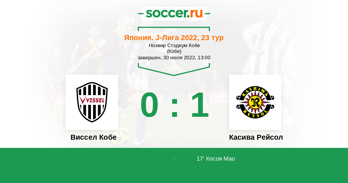 Виссел Кобе - Касива Рейсол: обзор матча 30 июля 2022