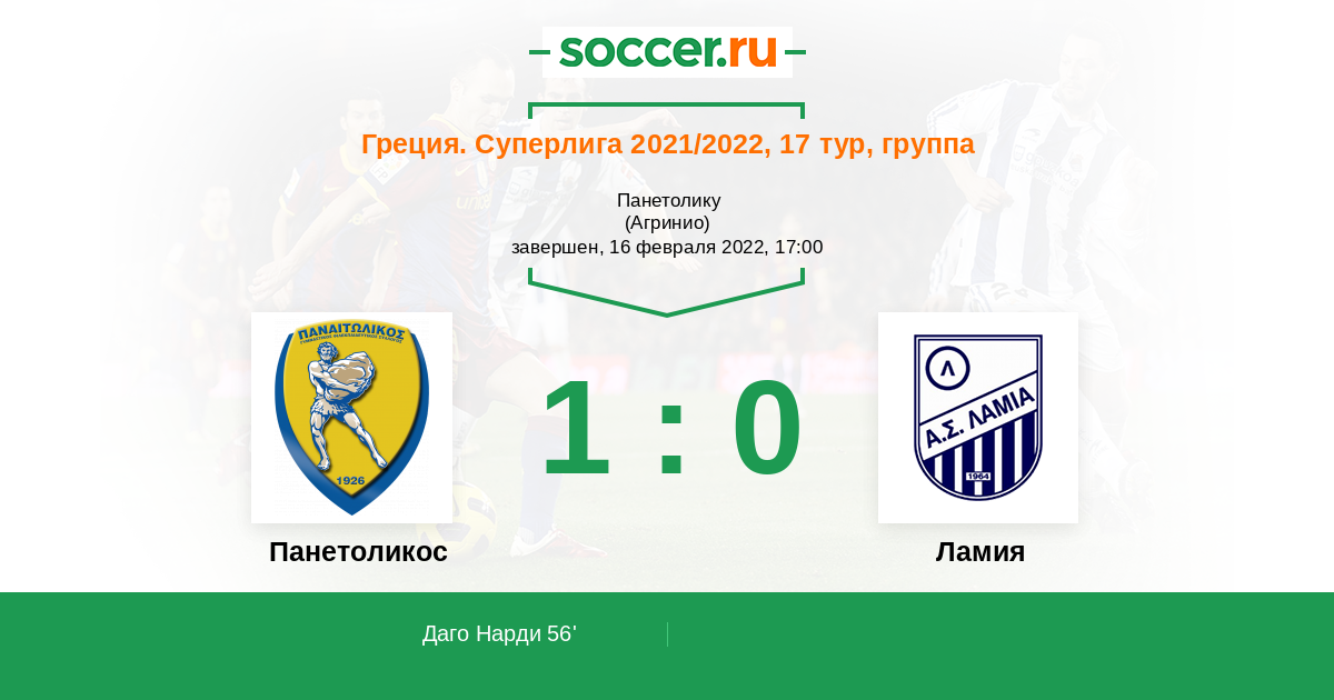 Панетоликос - Ламия: обзор матча 16 февраля 2022