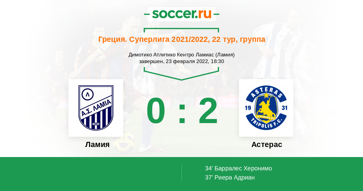 Ламия - Астерас: обзор матча 23 февраля 2022
