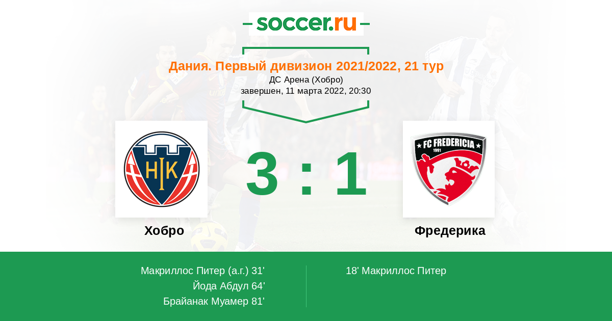 Хобро - Фредерика: обзор матча 11 марта 2022