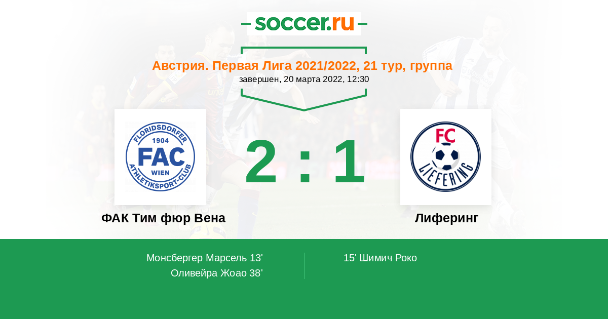 ФАК Тим фюр Вена - Лиферинг: обзор матча 20 марта 2022