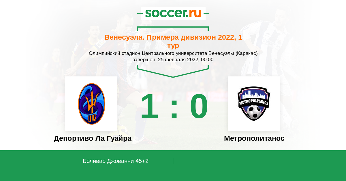 Депортиво Ла Гуайра - Метрополитанос: обзор матча 25 февраля 2022