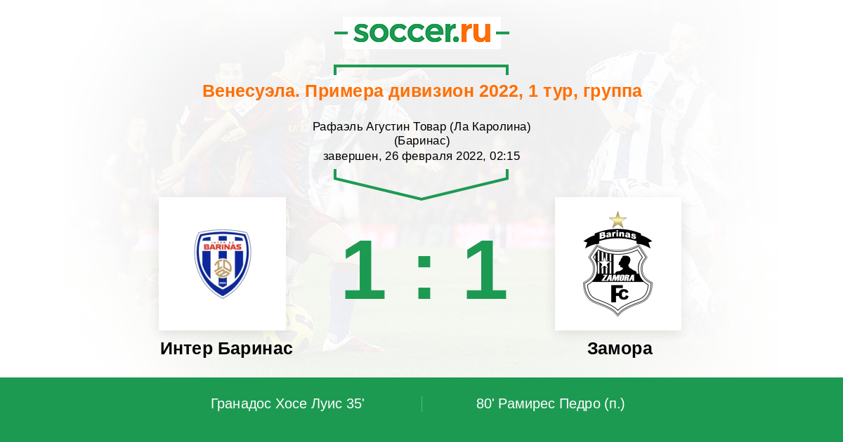 Интер Баринас - Замора: обзор матча 26 февраля 2022