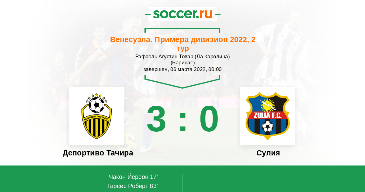 Депортиво Тачира - Сулия: обзор матча 6 марта 2022