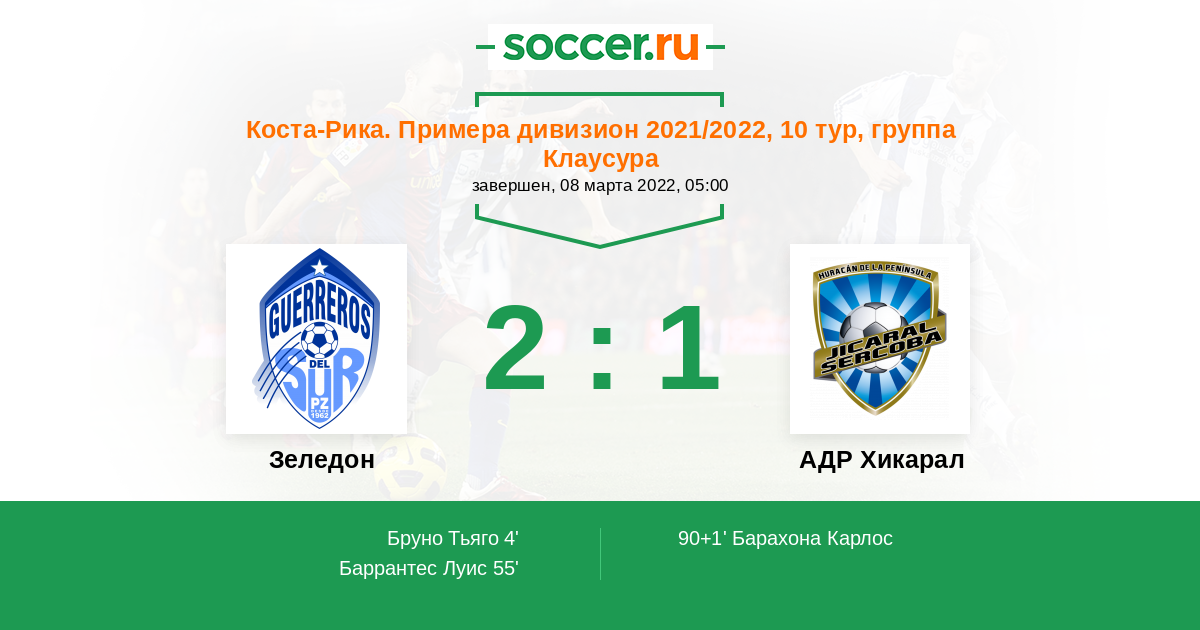 Зеледон - АДР Хикарал: обзор матча 8 марта 2022