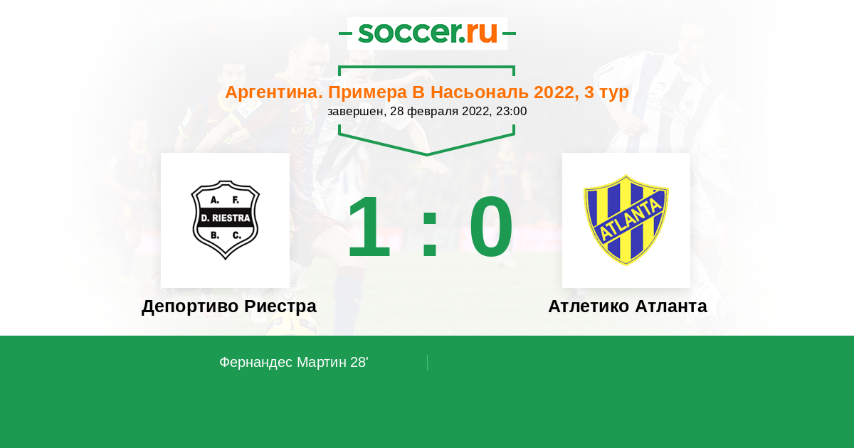 Депортиво Риестра - Атлетико Атланта: обзор матча 28 февраля 2022