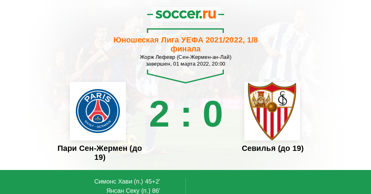Пари Сен-Жермен (до 19) - Севилья (до 19): обзор матча 1 марта 2022