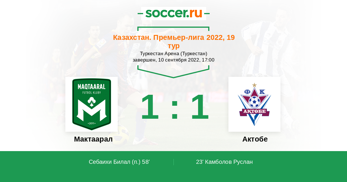 Мактаарал - Актобе: обзор матча 10 сентября 2022