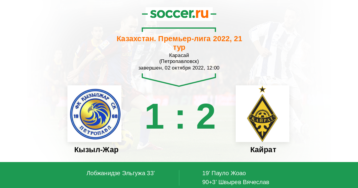 Кызыл-Жар - Кайрат: обзор матча 2 октября 2022