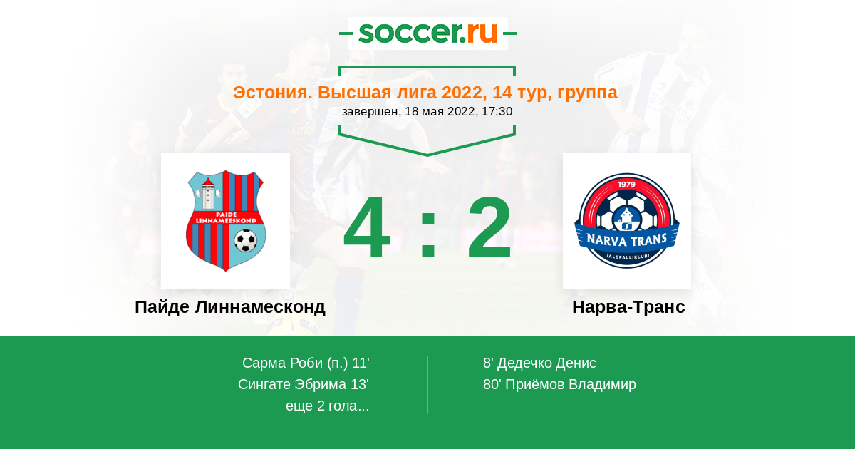 Пайде Линнамесконд - Нарва-Транс: обзор матча 18 мая 2022