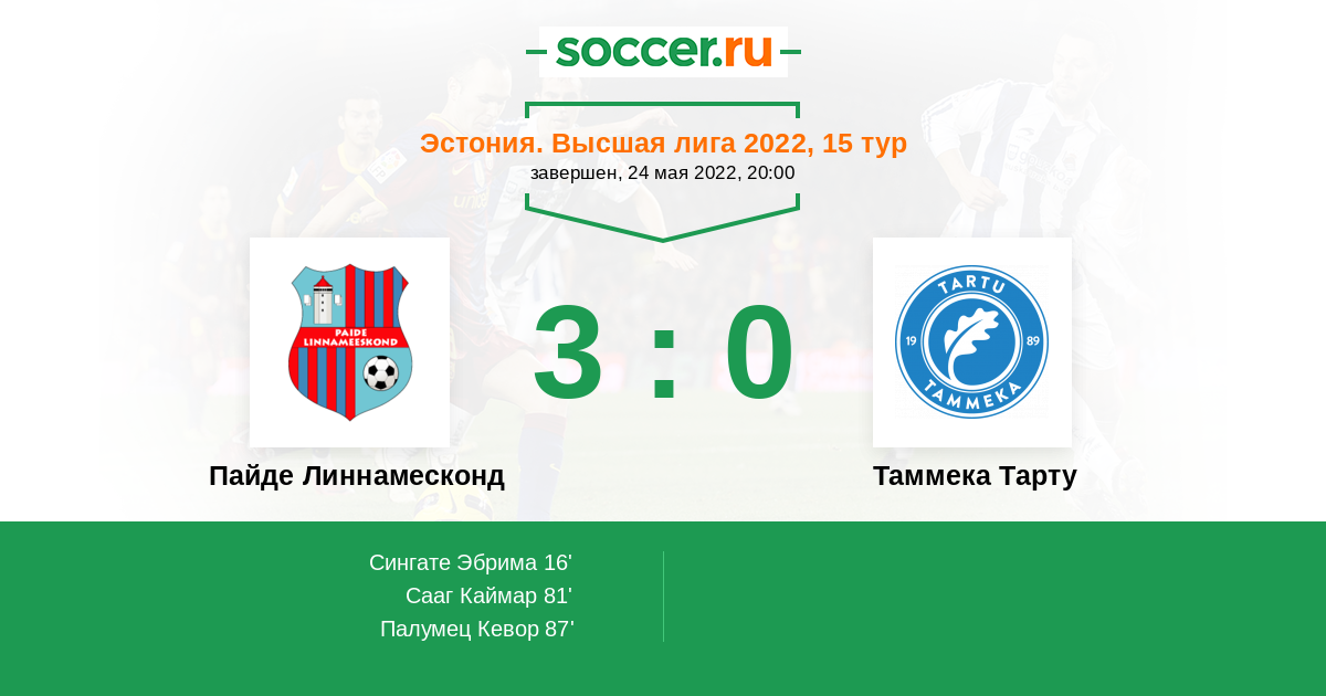 Пайде Линнамесконд - Таммека Тарту: обзор матча 24 мая 2022