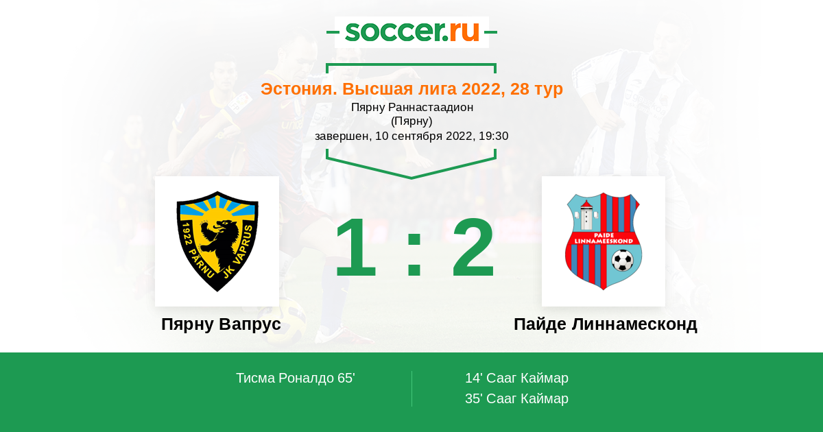 Пярну Вапрус - Пайде Линнамесконд: обзор матча 10 сентября 2022