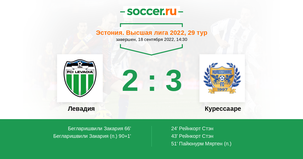 Левадия - Курессааре: обзор матча 18 сентября 2022