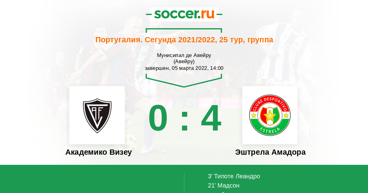 Академико Визеу - Эштрела Амадора: обзор матча 5 марта 2022