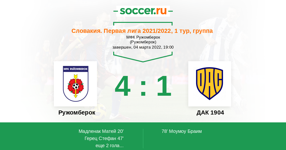 Ружомберок - ДАК 1904: обзор матча 4 марта 2022