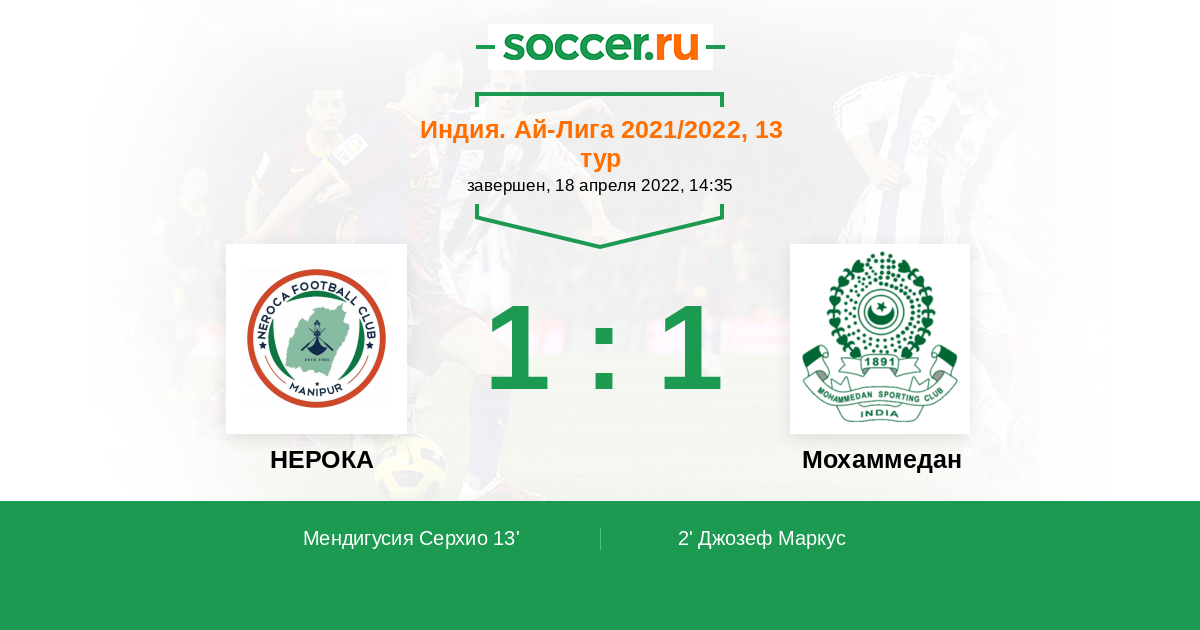 НЕРОКА - Мохаммедан: обзор матча 18 апреля 2022