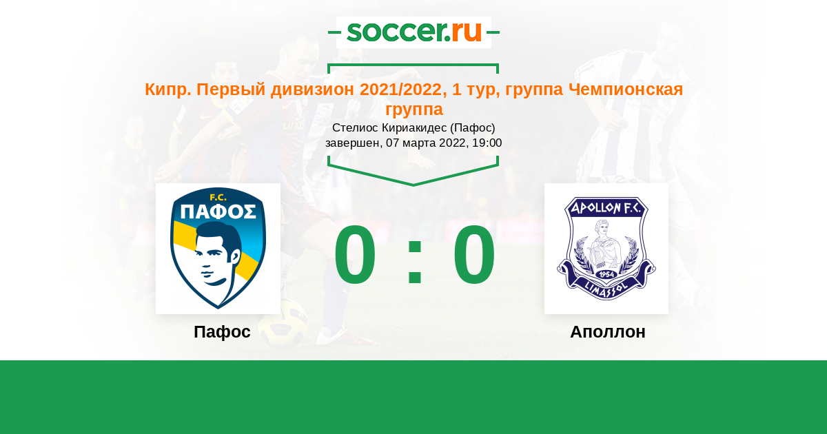 Пафос - Аполлон: обзор матча 7 марта 2022