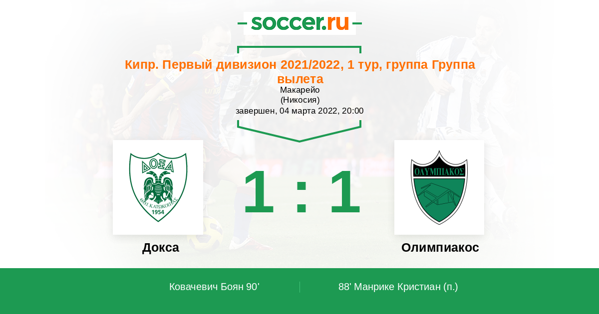 Докса - Олимпиакос: обзор матча 4 марта 2022