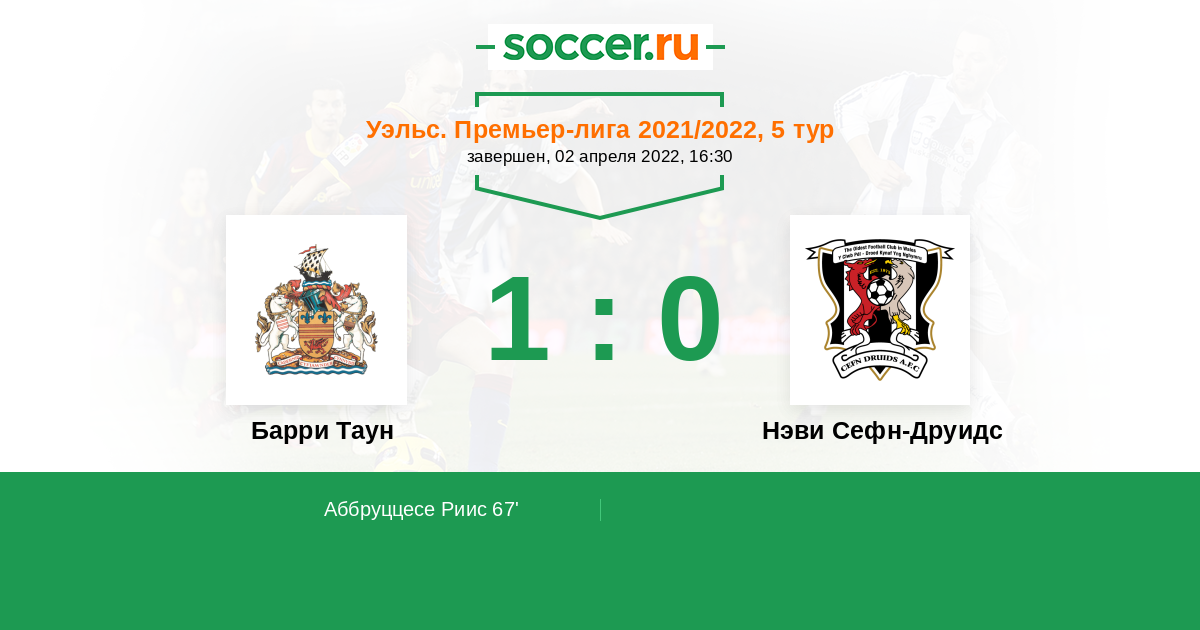 Барри Таун - Нэви Сефн-Друидс: обзор матча 2 апреля 2022