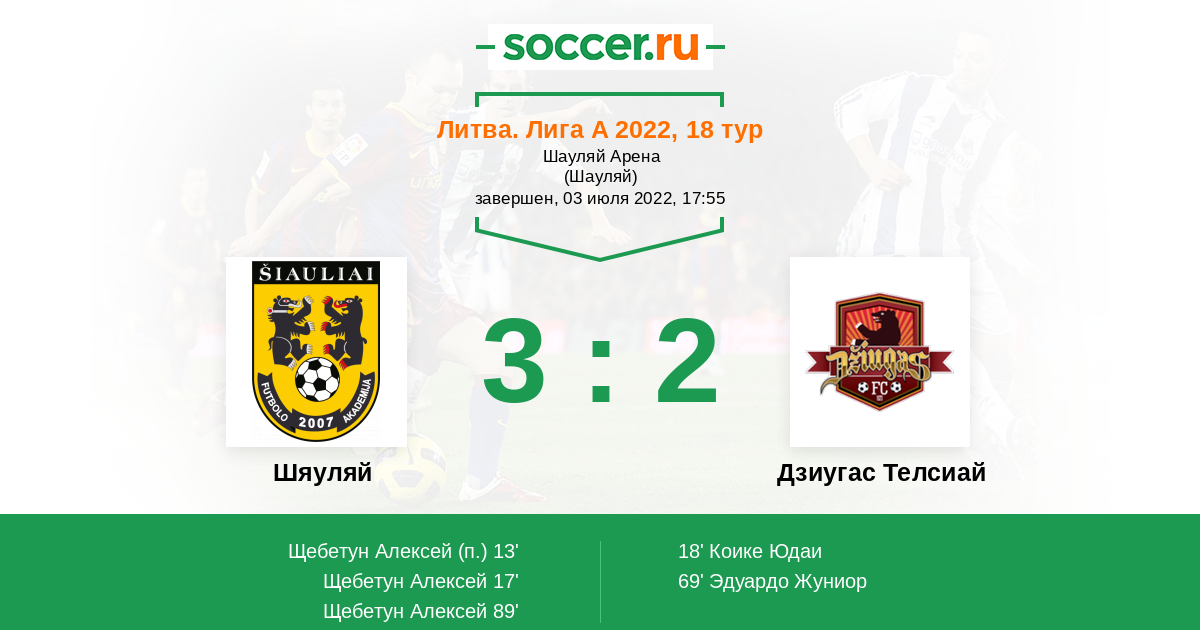 Шяуляй - Дзиугас Телсиай: обзор матча 3 июля 2022