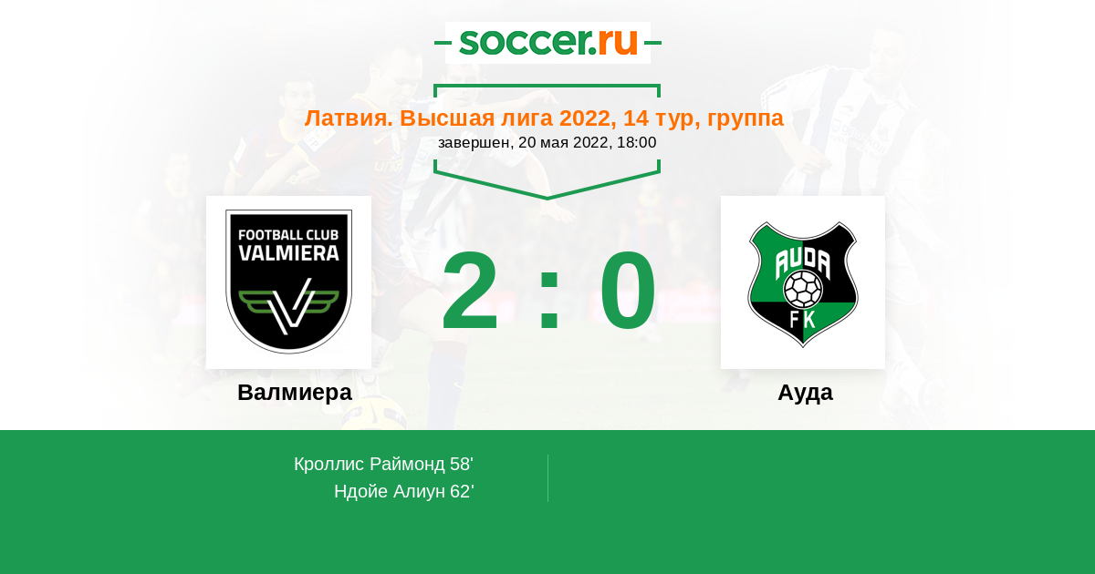 Валмиера - Ауда: обзор матча 20 мая 2022
