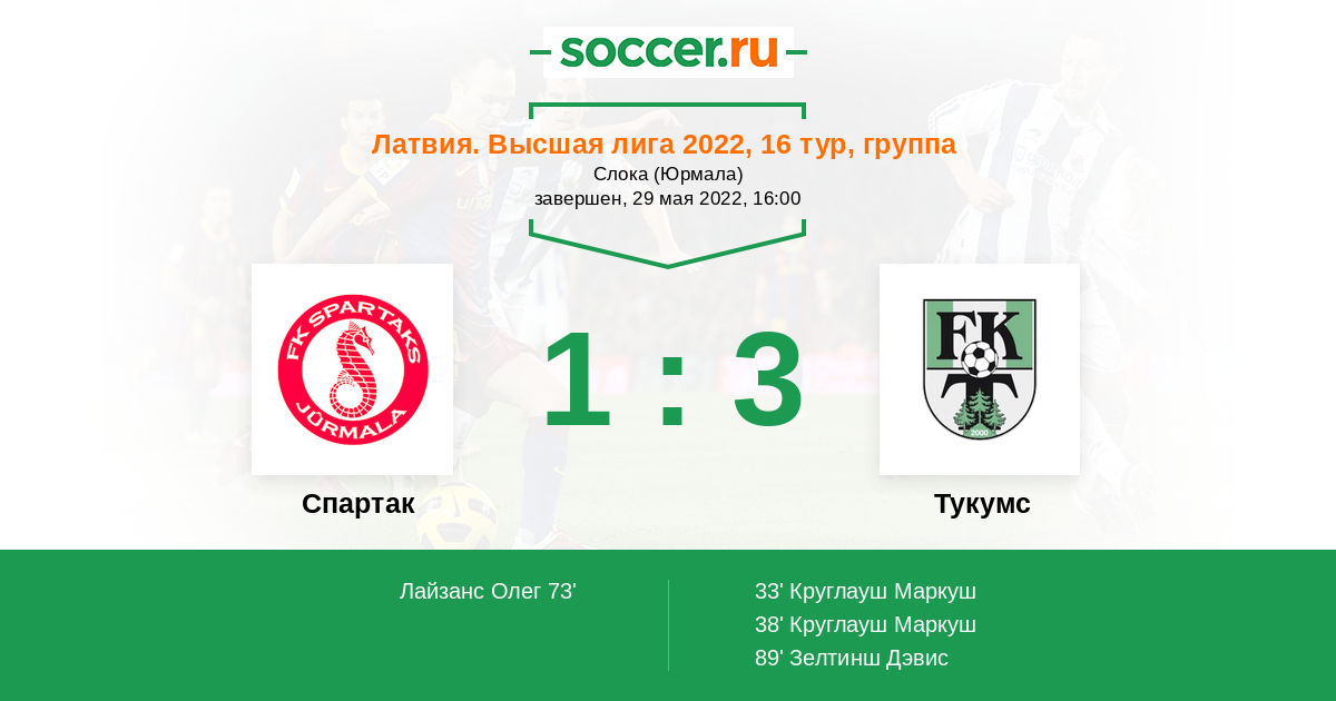 Спартак - Тукумс: обзор матча 29 мая 2022