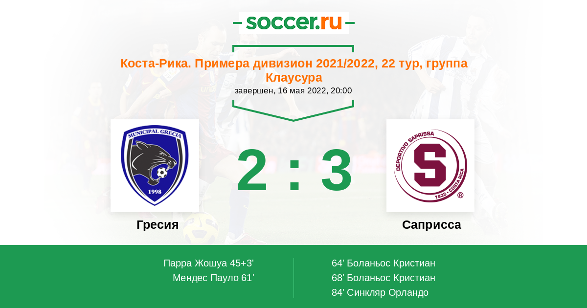 Гресия - Саприсса: обзор матча 16 мая 2022