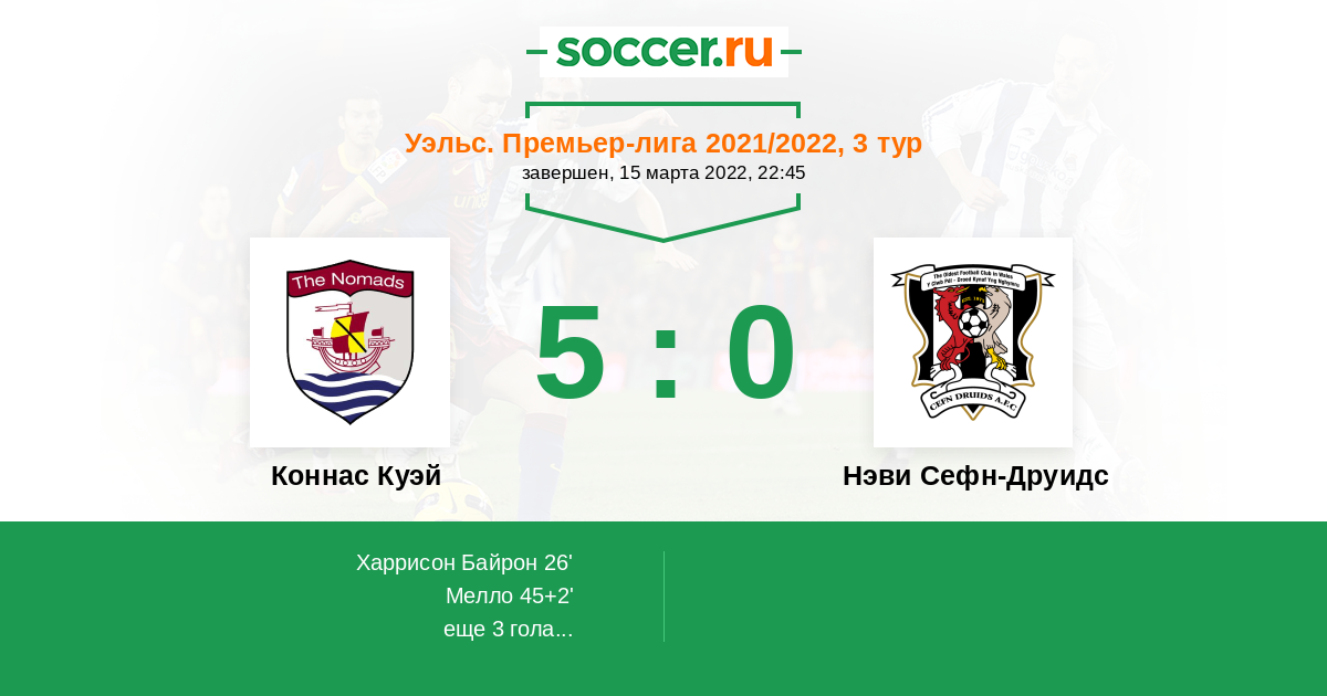 Коннас Куэй - Нэви Сефн-Друидс: обзор матча 15 марта 2022