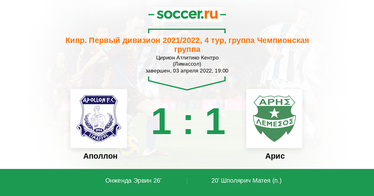 Аполлон - Арис: обзор матча 3 апреля 2022