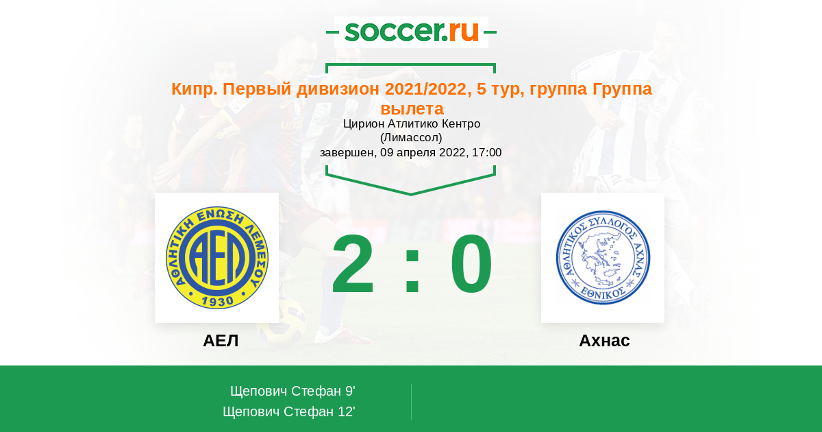 АЕЛ - Ахнас: обзор матча 9 апреля 2022